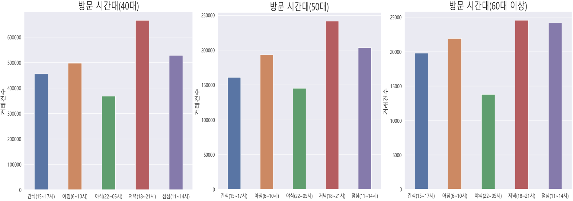 · 전체적으로 저녁(18~21시) 시간대의 방문 건수가 가장 많았으며, 그 다음으로 점심(11시~14시)가 따르는 모습.
