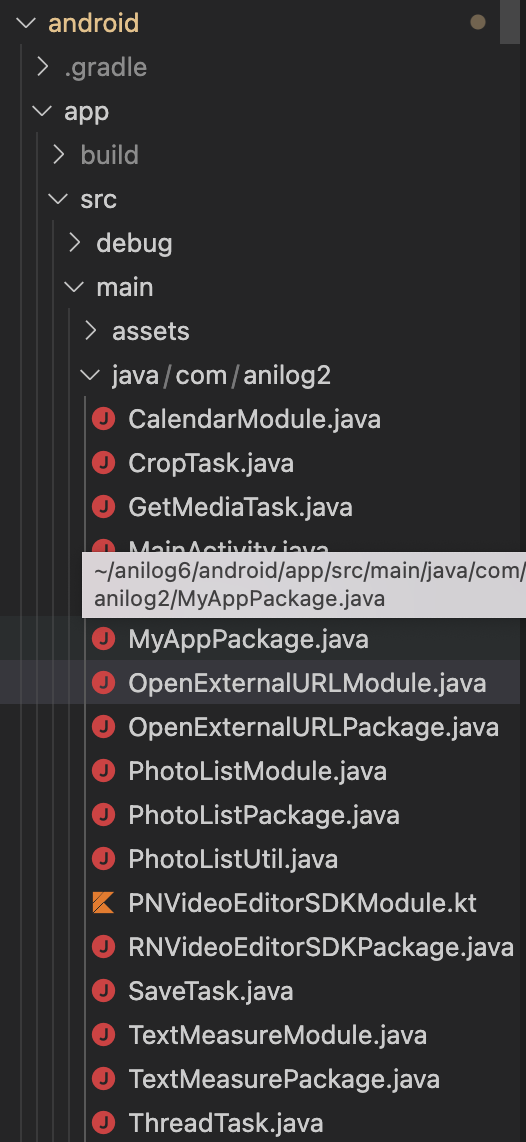 1. React Native 프로젝트 폴더의 MainActivity.java가 위치한 폴더에 추가할 모듈 파일을 만든다.